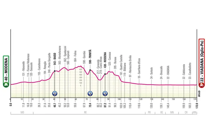 Stage 11, Wednesday, May 21: Viareggio - Castelnovo ne Monti (185.0 km)