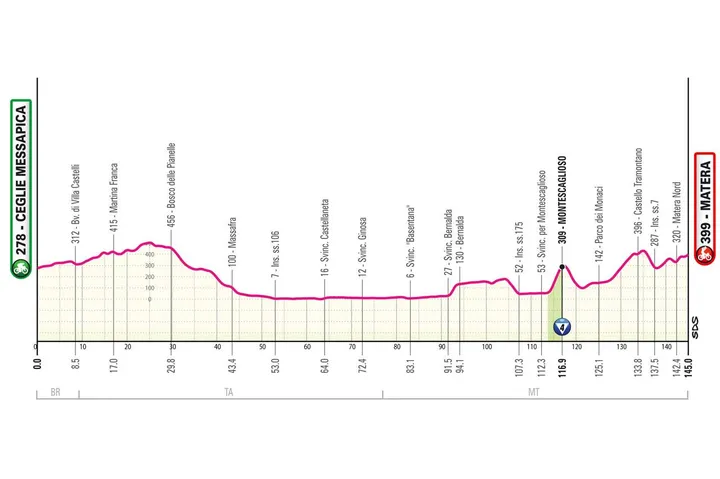 Stage 5, Wednesday, May 14: Ceglie Messapica - Matera (145.0 km)