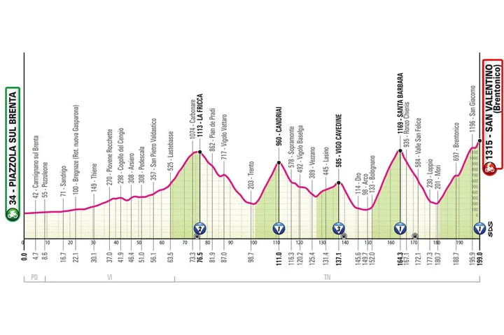 We have reached the final week of the Tour of Italy, and you know what to expect: extremely tough mountain stages. On the last Tuesday of the Giro, the RCS has scheduled a 199-kilometer stage over five passes. Fatigue will accumulate on La Fricca, Candriai, and Vigo Cavedine, which will undoubtedly show on Santa Barbara (12.8 kilometers at 8.3 percent) and the final climb to San Valentino (17.5 kilometers at 6.3 percent).