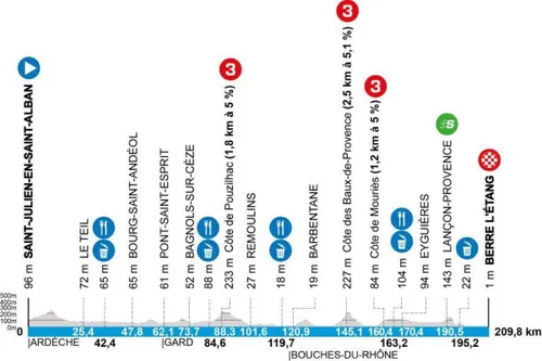 Stage 6, Friday, March 14: Saint-Julien-en-Saint-Alban - Berre l'Étang (209.8 km)