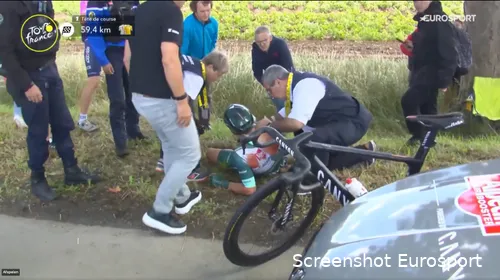 recovering from surgery on his pelvic arteries and is in the Tour de France for one day. “It was a bit of pushing and shoving. Coquard became a kind of punching bag. He got a kind of whack and a push, and then yes...”