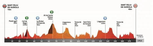 From the start, we immediately begin a rolling phase, where it will be watchful for the danger of a strong breakaway group. After 120 kilometers we reach Sant Feliu de Guixols, where the last kilometer is up at about four percent, then for a first time. However, there is then another fifty kilometers on the program. Then we will trek back over rolling roads towards the start and finish place, where the final uphill kilometer has to be conquered after some earlier climbs.