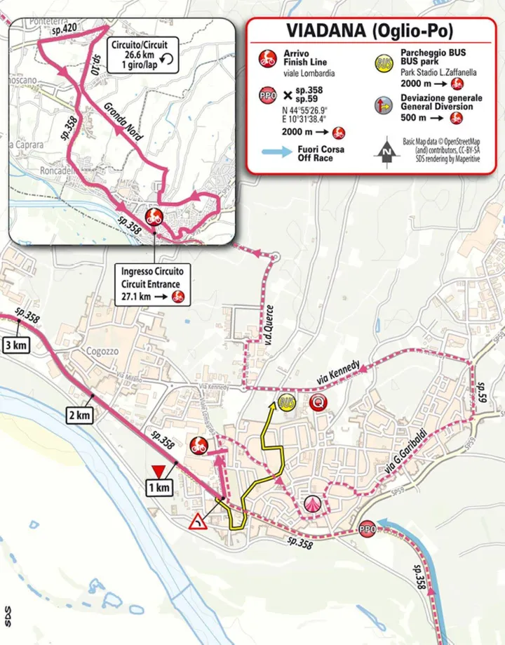 After tackling the Borsea climb (3.9 km at 5.5%), the peloton heads downhill before the final 70 kilometers flatten out completely. Just under 30 kilometers from the line, the riders pass through Viadana for the first time, right after the Red Bull kilometer, before taking on a local finishing circuit.