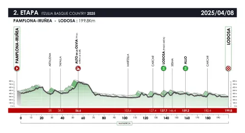 The climbs don't last long and are not too tough, but enough to considerably reduce the size of the peloton. A sprint is possible, but don't count out the breakaway riders. Because the Basque Country isn't exactly brimming with fast riders either, those with a long straight final stretch in Lodosa will get an arrival ideally suited to them.