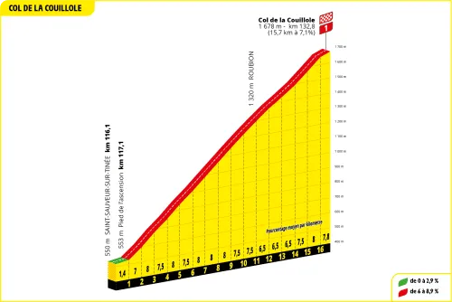132.8 km: COL DE LA COUILLOLE (15.7 km at 7.1%)