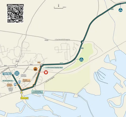 It includes two climbs, Mercador (6.2 kilometers at 4.4%) and Faz Fato (4.7 kilometers at 3.3%), but they are far from the finish and are unlikely to have much impact on the course of the race. After about 168 kilometers, we return to the start town, from where we this time take the shortest route to Tavira, where the Tour of Algarve almost always finishes.