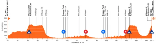 Willunga Hill, Willunga Hill! If there is one climb closely associated with the Australian season opener, it is, of course, this one. The 3.3-kilometer climb, which climbs at an average of 7.4 percent, brings spectacle every year. The top climbers can use the first passage, 25 kilometers from the finish, to hurt the punchers, and then it all comes down to the final climb.