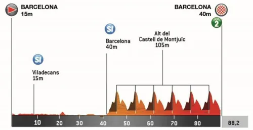 Then comes the well-known local circuit, with the Alto del Castell de Montjuïc acting as the ultimate decider. It will be tackled six times in nearly 50 kilometers, and it’s no easy climb: on paper it’s 2.5 kilometers at 4.4%, but the final kilometer kicks up to 10.5%, with even steeper spikes. If a Primoz Roglic or