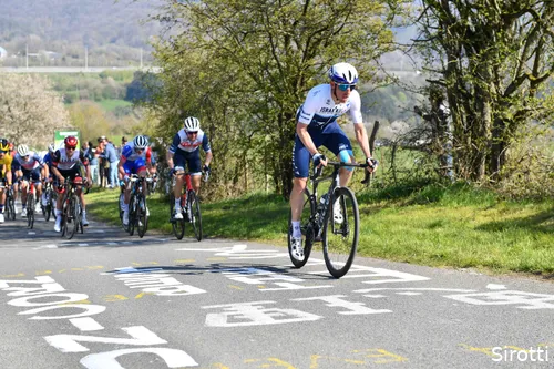 With top climbers like Rafał Majka, David de la Cruz and Dylan Teuns in the group, competition for the day’s win was fierce. The favourites let the escapees have their day, and it was that trio, together with Woods, who hit the final kilometre. It was brutally, brutally steep: in the Basque mist, Woods launched his move.
