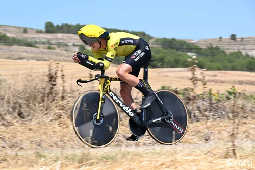 Visma | Lease a Bike is on track to win the Tour of Burgos with Sepp Kuss. The American kept his position in the time trial on Thursday, although it was close, and would typically not hand over his leading position in the closing final stage. Edoardo Affini was the team's best rider in the time trial, with second place.