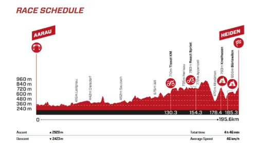 With 5.2 km at 6.2%, serious damage can already be done there, after which the Büriswilen (2.0 km at 6.9%) and the final 3.5 km at 5.3% will do the rest. The final phase is also quite irregular, with sections of 8% to a flats section in Heiden, which is located on Lake Constance. Interesting!