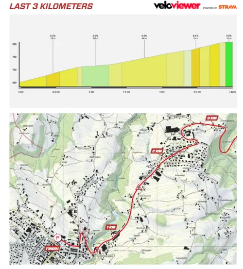 The riders will face a flat opening phase to get there—at least flat by Swiss standards. That means there are no categorized climbs on paper, but in practice, quite a few meters of elevation must be conquered, which will make a difference at the end of the race.