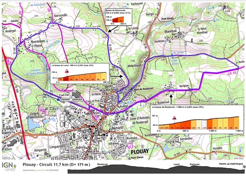 There are three more tricky climbs in this local lap, the first of which is the Rostervel. This one is 1.5 kilometers at 4.5 percent, after which the riders get a little breathing room. The Lezot (0.8 km at 5.3 percent) and Kersoulic (0.3 km at 8.9 percent) follow each other a bit faster, after which we still have about four kilometers in a slightly downhill trend to the finish line in Plouay. Therein, it often comes to a battle between a few breakaway riders and a trailing group.