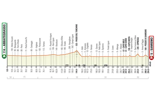 Milan-San remo does not commence from Milan but from Pavia, a city located south of the Italian fashion hub. The riders will only dismount their bikes 299 kilometers later, narrowly missing the three-hundred-kilometer mark. The organizers have opted for the same route in 2024 as last year. This means that midway through the course, we will ascend the Passo del Turchino before proceeding along the coast towards the three 'Muri'. The Capo Mele, Capo Cervo, and Capo Berta always induce nervousness, yet victories here are rare.
