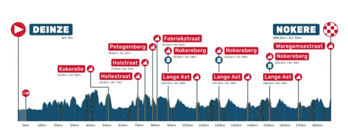 Obviously, these obstacles will serve only as warm-up challenges. Once the riders tackle Nokereberg (350 meters at 5.7%, max 7%) for the first time, the race will move into two local circuits of 31.3 km each, followed by an extended final lap of 37.8 km.