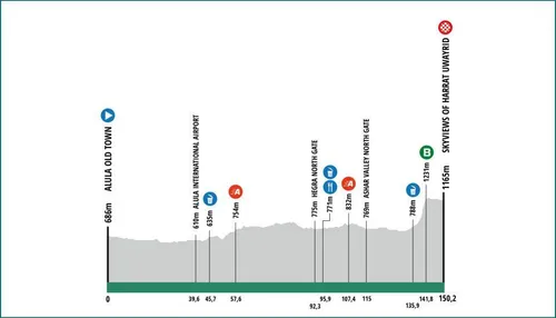 The AlUla Tour kicks off with a nearly 150-kilometer stage around Al Manshiyah Train Station. It's a predominantly flat route, where sprinters will keep a keen eye on the wind and aim to race for the stage victory.