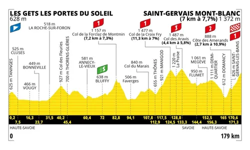 179.0 km: Saint-Gervais Mont-Blanc (7.0 km at 7.7%)