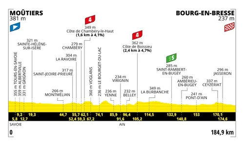 Stage 18 - Thursday, July 20th, 2023: Moûtiers - Bourg-en-Bresse (186 km)