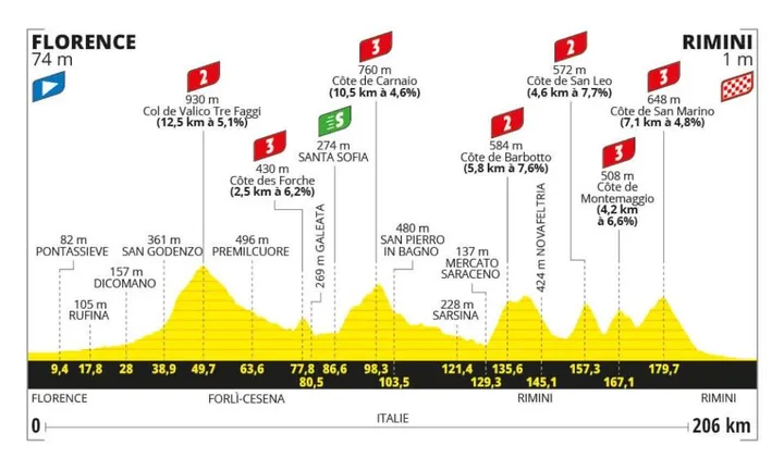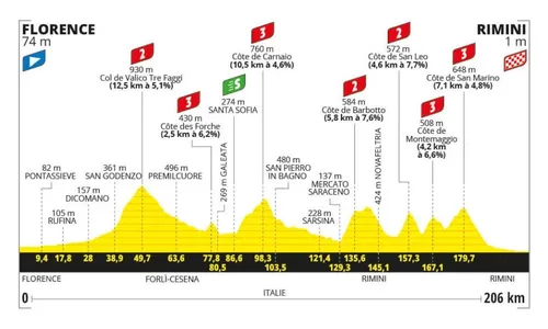 Stage 1 - Saturday, June 29, 2024: Florence - Rimini (206 km)