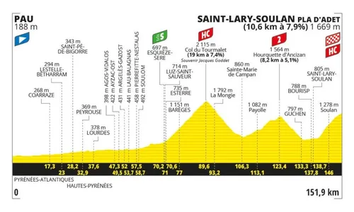 Stage 14 - Saturday, July 13, 2024: Pau - Saint-Lary-Soulan Pla d'Adet (151.9 km)