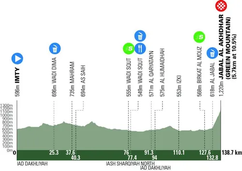New day, new hilltop finish. From Al Rustaq Fort to the Yitti Hills, that is what is on the menu for Tuesday's stage. The last fifty kilometers are somewhat reminiscent of an Ardennes classic, where the punchy types will likely once again prevail after more than two hundred kilometers of racing.