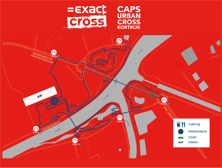The course of the Urban Cyclo-cross is somewhat unconventional for a cyclo-cross race, because as the name suggests, it takes place right in the heart of the city of Kortrijk, Belgium. Starting on Burgemeester Vercruysselaan, riders immediately cross the Leie River via the Groeninge Bridge. The opening section is fast, with plenty of asphalt, followed by a short technical zone featuring the pit area. A long straight stretch along the water then leads to the Koning Albert Park, where riders face a challenging technical section.