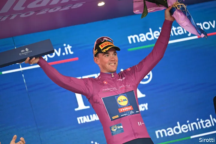Mads Pedersen lost his pink jersey to Primoz Roglic again on Friday, but the Dane from Lidl-Trek had already prepared for this. In words, the day before, and in actions, by riding at the front. As leader in the points classification, Pedersen will complete the upcoming stages in the purple points jersey. Approaching the day's final climb, the wearer of the maglia rosa suddenly took the lead. "We wanted a good result with Vacek because he deserved the chance to go for the pink jersey. With an excellent result, we succeeded. When Daan Hoole and I started riding at the front, the leading group still had three and a half minutes."