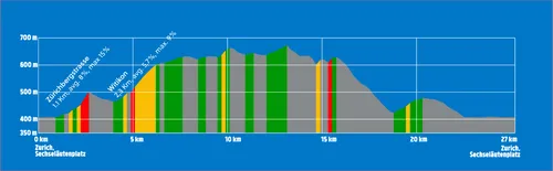 "At the beginning of the circuit, there's a fairly steep but short climb," he refers to Zürichbergstrasse, approximately 1100 meters long. "After that, we get a slight downhill section, followed by a longer climb (Witikonerstrasse, 2.3 kilometers at 5.7 percent, peaking at nine percent)." This in itself doesn't immediately pose problems, but repeating it seven times over such a distance... then it continues with ups and downs, without a true descent where you can truly recover."