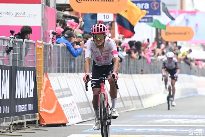 Carapaz also stayed put during the decisive breakaway by the eventual Giro winner. "Which is super smart. He lets it slow down, and what does Del Toro do? Instead of doing Mollema-style lead-outs—keeping the pace going, giving your opponent the idea that you're still in the game—he does nothing. If you don't do it as the pink jersey wearer, Carapaz isn't going to do anything at all."
