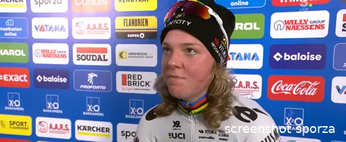 Puck Pieterse gloriously won in Koksijde at the X2O Trophy cross. Behind her, Inge van der Heijden seemed to have every chance of a podium for a long time, but she eventually lost ground. Lucinda Brand and Fem van Empel came second and third, with Brand in particular coming pretty close in the end. The Dutch champion is angry with herself. "Well, I blew it in the first round, and it went average. I don't know what I was doing there," said the Baloise Glowi Lions rider in the flash interview.