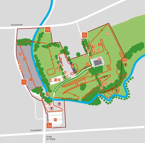 The riders then face a more technical zone, immediately followed by the barriers and the sandbox. After some time to catch their breath, they move on to the hill zone, after which two bridges and some turns bring them to the start/arrival zone. Depending on the weather conditions, it could be a tough mud race with some running sections or a race where you cycle easily through the field.