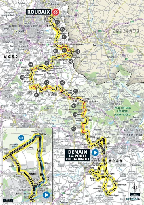 The women’s Paris–Roubaix is 148 kilometers long and will start in Denain, a town we of course know from the GP Denain. From the starting point, the riders first complete a southern loop of around fifty kilometers, passing the start line once more. This time, however, they’re sent northward, and soon after that comes the first of seventeen cobbled sectors.